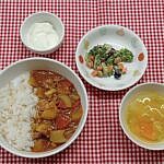 挽肉カレー ミックスビーンズサラダ かぼちゃとコーンのスープ ヨーグルト