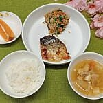 ご飯 鯖の香味焼き ほうれん草の納豆和え 豚汁 くだもの